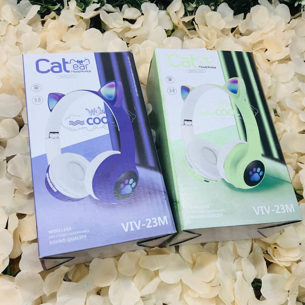 Auriculares inalámbricos con diseño de orejitas de gato que se iluminan en 7 colores. Con sonido envolvente, bluetooth, micrófono incorporado y excelente duración de batería. Son perfectos para música, juegos o videollamadas.
